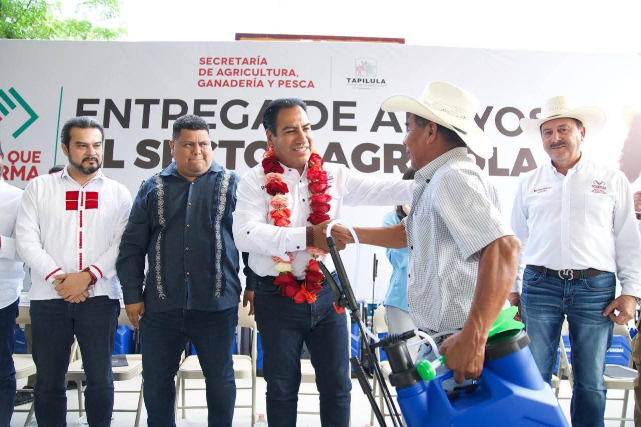 - En Tapilula, entregó apoyos al sector agrícola y becas Rosario Castellanos, además de constatar los servicios de las Unidades Médicas Móviles
