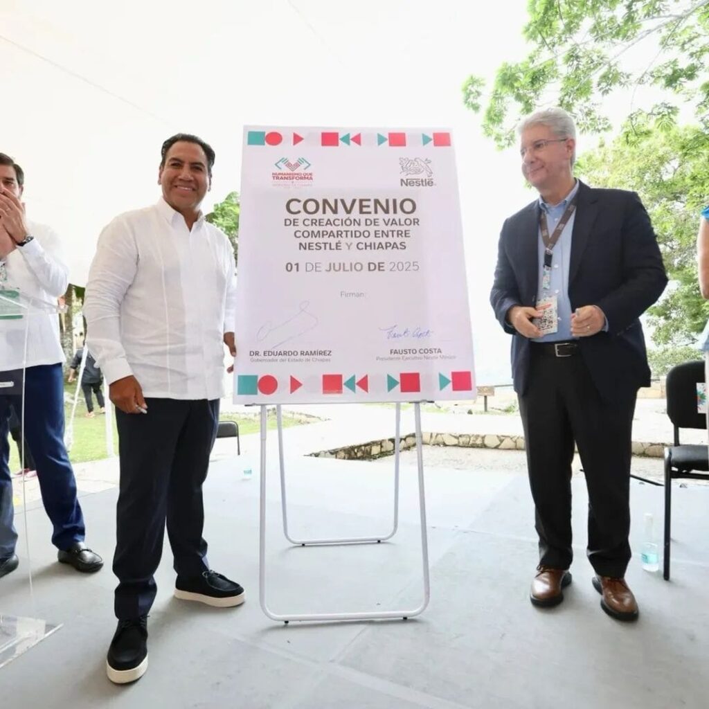 Al resaltar la relevancia de esta alianza, el mandatario reiteró la disposición de su gobierno para seguir colaborando con Nestlé en acciones que siembren bienestar, construyan futuro y generen esperanza para el pueblo chiapaneco. “En nosotros tienen a un aliado. Siempre estaremos dispuestos a contribuir con el desarrollo de nuestra madre naturaleza, pero también con ese desarrollo laboral que tanta falta le hace a Chiapas”, expresó.