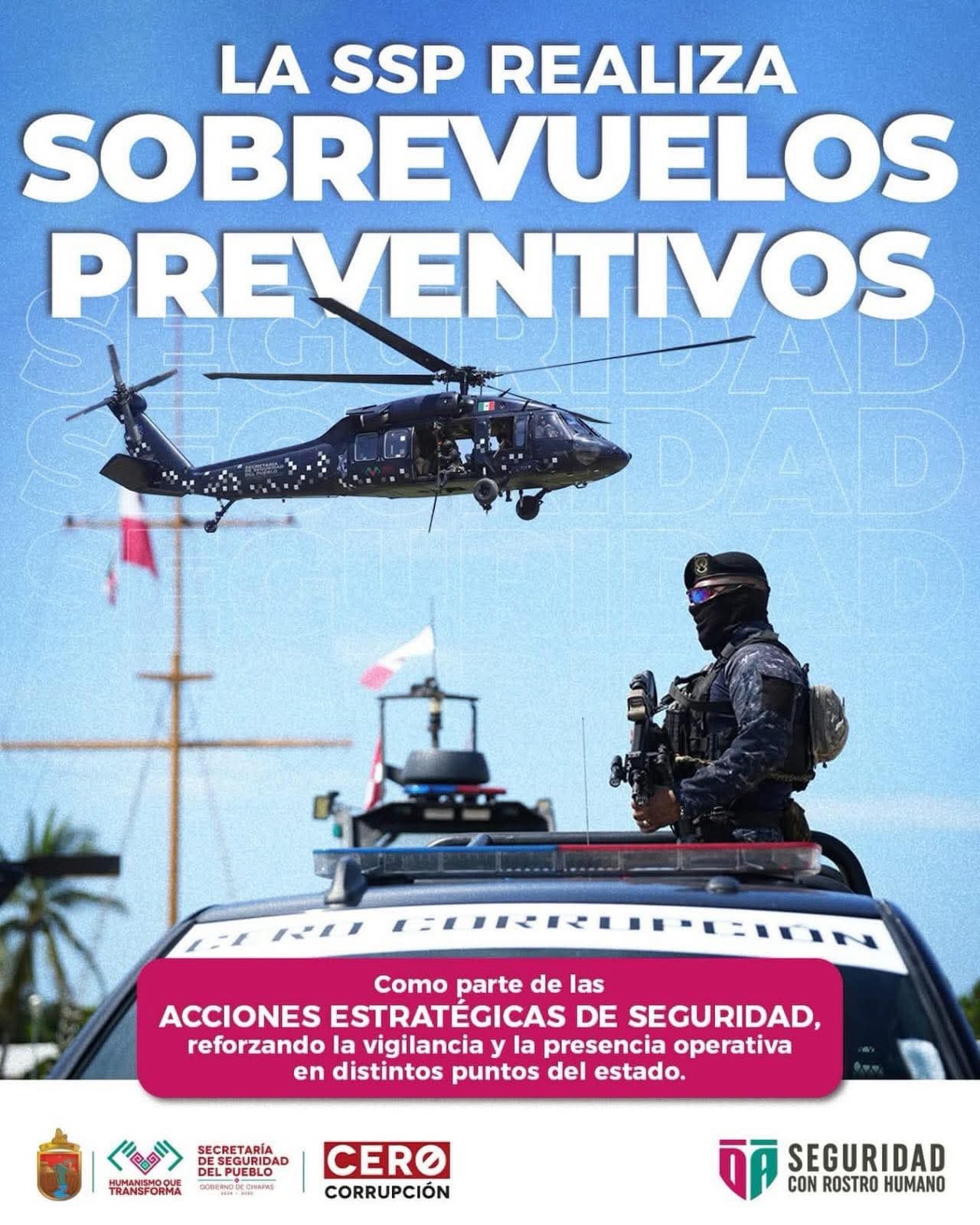 Respecto al operativo llevado a cabo en Jalisco, he instruido al Gabinete de Seguridad a redoblar la vigilancia en la frontera con Centroamérica y carreteras colindantes con Tabasco, Veracruz y Oaxaca, para vigilar permanentemente y con mayor atención cualquier pormenor que llegue a existir en nuestra entidad y actuar de inmediato y de manera contundente en caso de alteración del orden público. En Chiapas, respaldamos las acciones de la presidenta Claudia Sheinbaum Pardo y de la Secretaría de Seguridad y Protección Ciudadana que dirige Omar García Harfuch, y de todo el Gabinete de Seguridad del Gobierno de México.