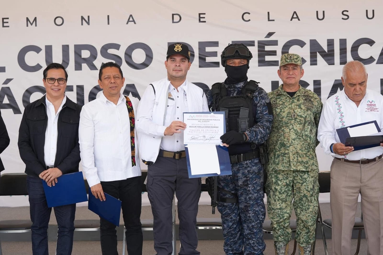 Con el firme compromiso de capacitar a los elementos de seguridad, el titular de la Secretaría de Seguridad del Pueblo (SSP), doctor y piloto aviador, Óscar Alberto Aparicio Avendaño, encabezó la ceremonia de clausura del “Curso de Técnicas y Tácticas Policiales”, en el cuartel general Llano San Juan en el municipio de Ocozocoautla.